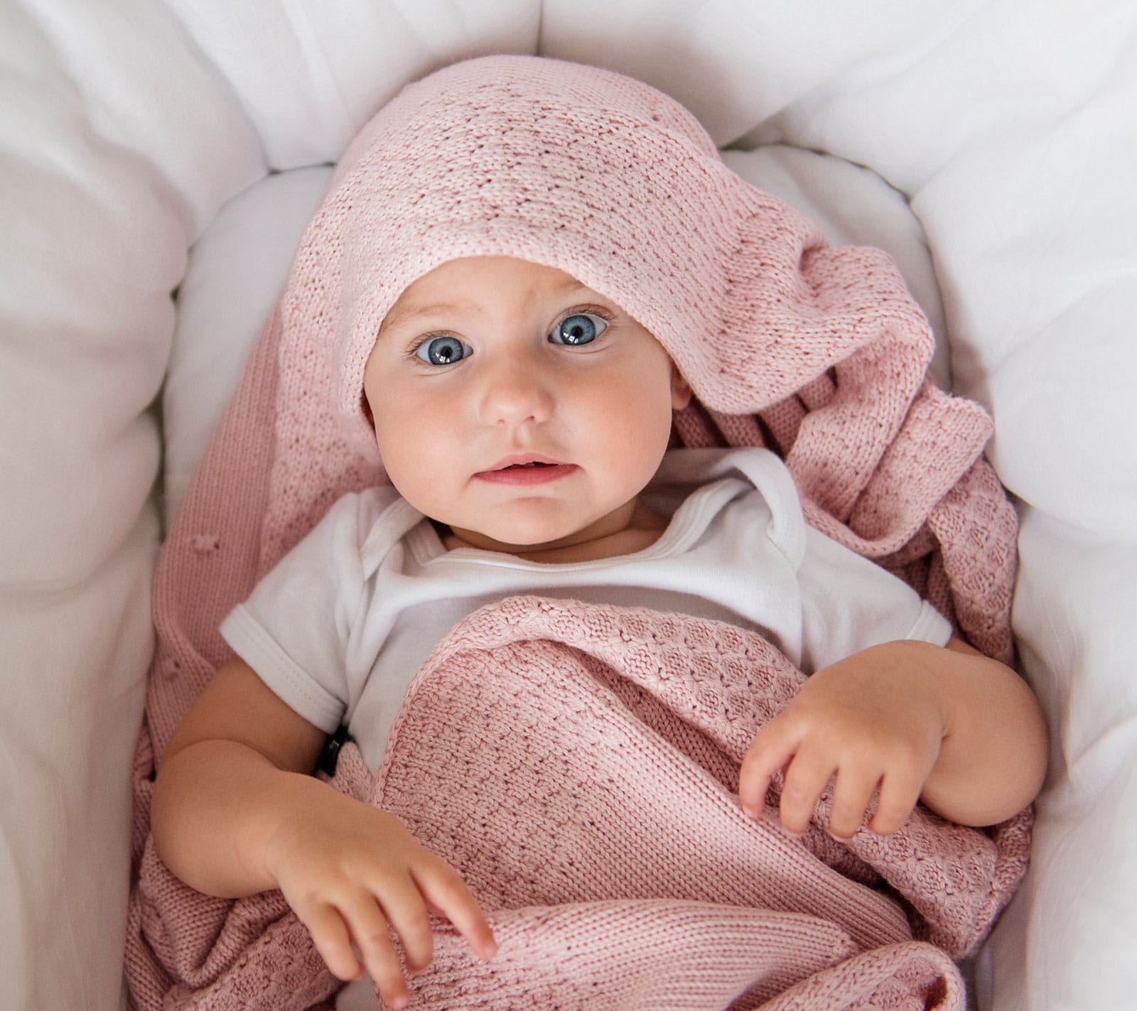 Koc wykonano z certyfikowanej przędzy (Oeko-Tex Standard 100, klasa dla niemowląt), co gwarantuje bezpieczeństwo i delikatność dla wrażliwej skóry Twojego dziecka.